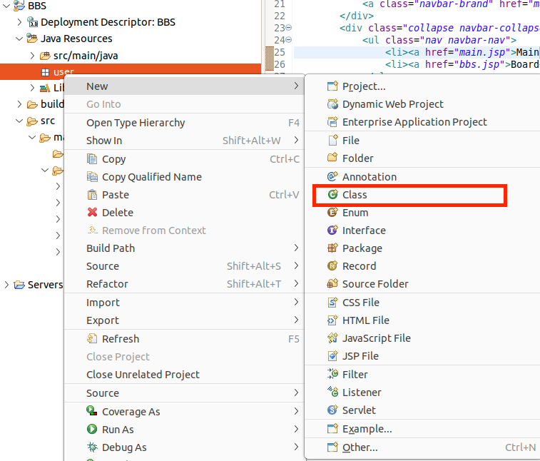 로그인 폼이 존재하는 페이지로, 상단에 main.jsp와 bbs.jsp로 이동하는 bar와 login 및 sign up을 수행하는 페이지로 이동되는 버튼을 추가할 것입니다.