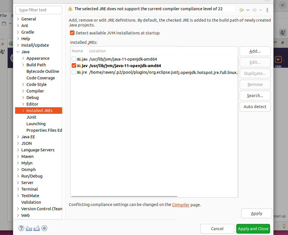 ②window-preference-java-installed jres에서 설치한jdk로 변경