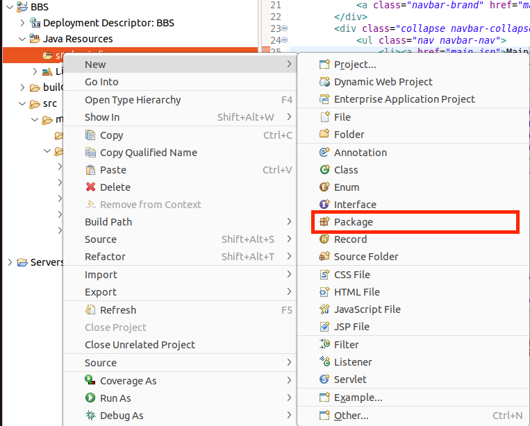 이클립스 > Servers 탭, Run On Server가 없는 경우 어떻게?