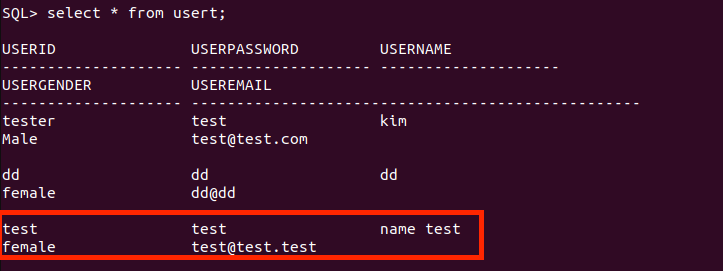 ③최종적으로 데이터베이스 테이블에서 해당 데이터를 확인할 수 있으며, 로그인 기능도 잘 작동