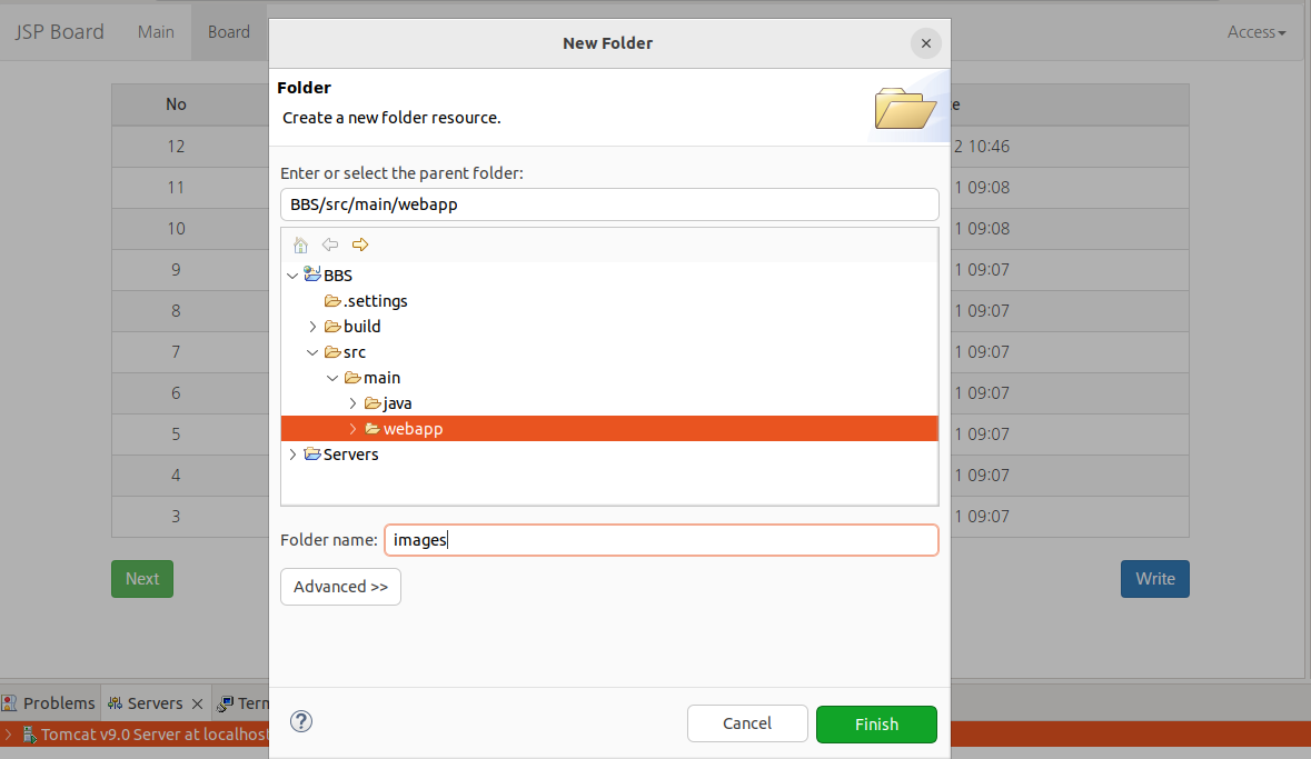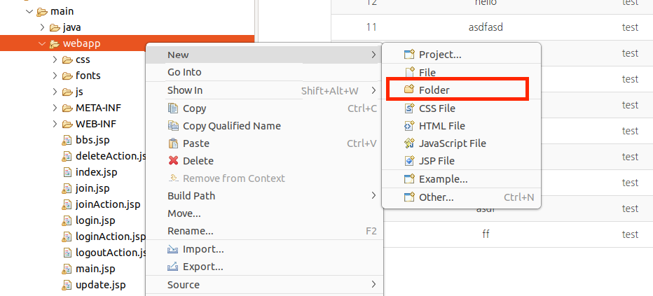 ①webapp 에서 'New'- 'Folder' 클릭 - 'images' 작성